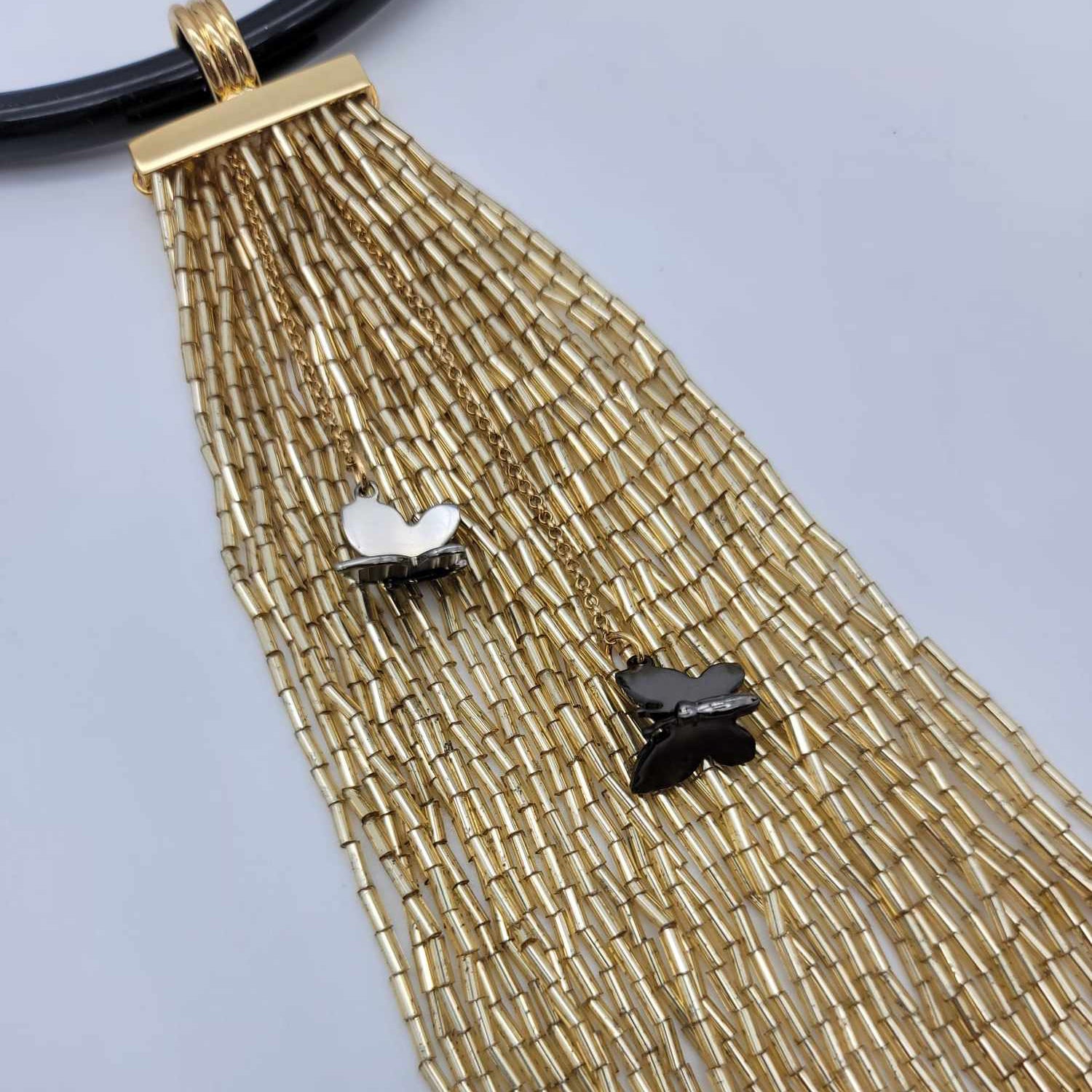 Italian Black Resin Collar Gold Butterfly / Gold Beads Necklace