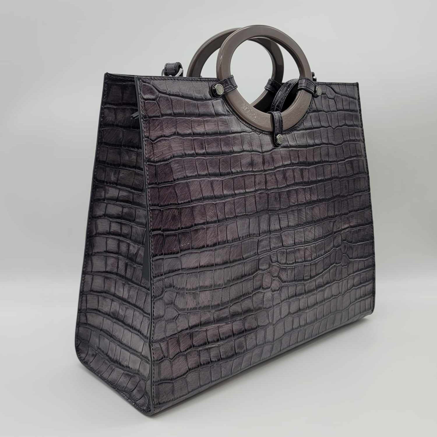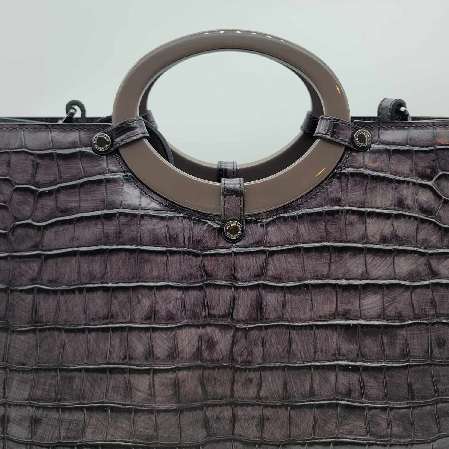 Italian Eggplant Crocodile Print Calf Leather Handbag