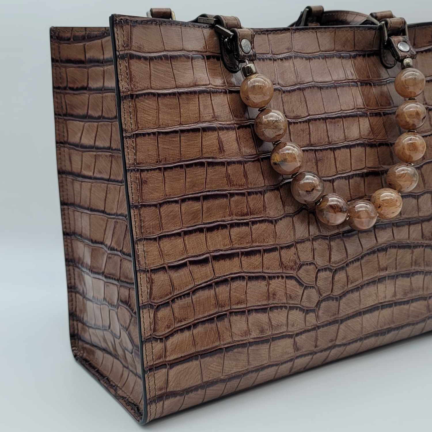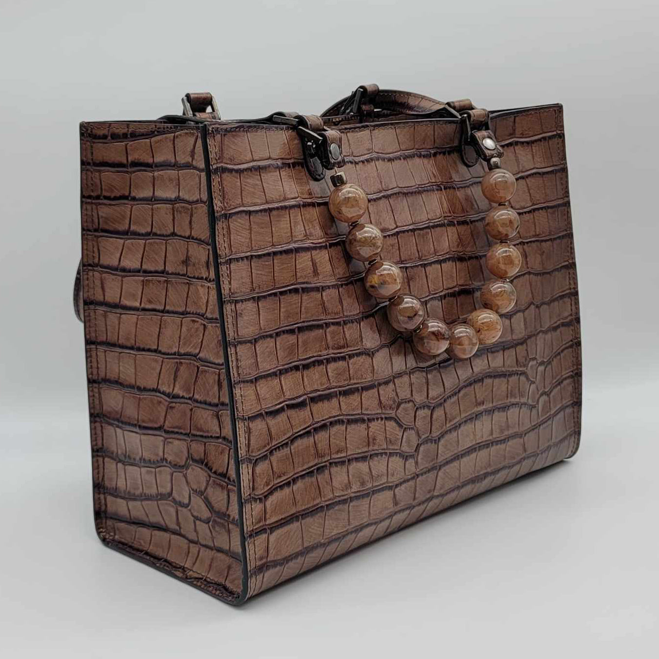 Taupe Crocodile Print Calf Leather Jewel Handle Bag